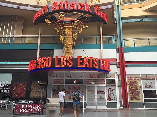 Il locale in questione è a tema: avete presente i ristoranti vegani? Ecco, l'esatto opposto: il menù propone solo carne annegata nelle salse e accompagnata da bevande dolci e gassate. Un pieno di grassi a ogni boccone e di zuccheri a ogni sorso, effetto ottura-coronarie garantito. Il nome è esplicito: "Heart Attack Grill", attacco al cuore.