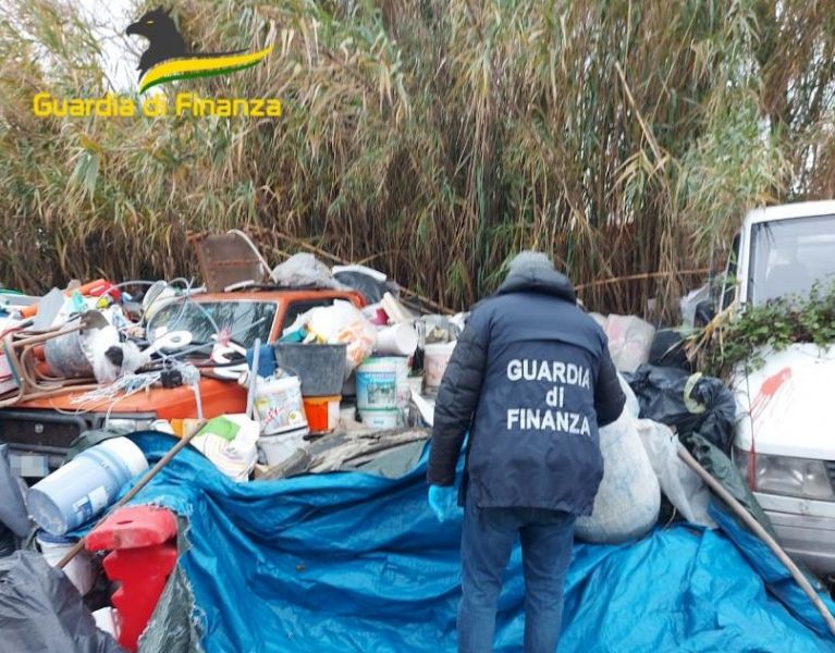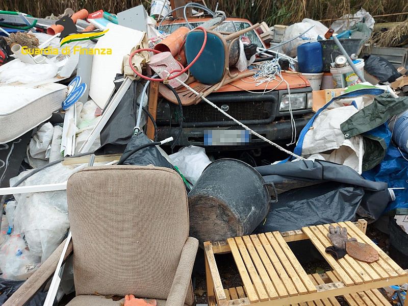 Nell'operazione i finanzieri hanno messo i sigilli a due aree per 3.000 metri quadri di terreni e oltre 450 tonnellate di rifiuti. Otto denunciati