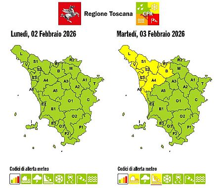 Il bollettino di criticità, valido per tutta la giornata di domani, martedì 3 Febbraio, interesserà in particolare il Valdarno inferiore, la costa a nord della foce dell’Arno, la Lunigiana, la Garfagnana, la Versilia, l’area lucchese, la Valle del Serchio e quella del Reno.