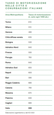 Ancora, proprio la Città metropolitana di Firenze è stata monitorata per un altro parametro, ovvero il tasso di motorizzazione: si è collocata al settimo posto a livello nazionale con 550 auto ogni 1.000 abitanti. Per quanto riguarda i dati toscani si parla di 719 auto private ogni 1000 abitanti.