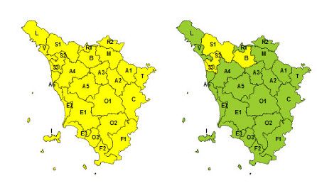 TOSCANA — La sala operativa della protezione civile regionale ha esteso a tutta la regione, fino a mezzanotte, l'allerta gialla per temporali forti, rischio idrogeologico e rischio idraulico del reticolo minore.