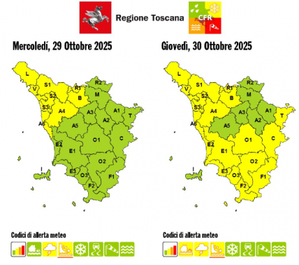 Contemporaneamente è stata emessa anche un'allerta gialla per rischio idraulico del reticolo principale, che domani, dalle 10 alle 23, interesserà la Lunigiana e i bacini del Bisenzio e Ombrone Pistoiese