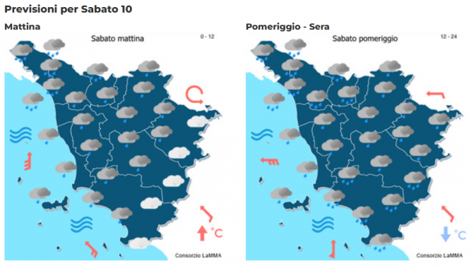 Le temperature? Varieranno sì ma non saranno terribilmente fredde. Il tratto distintivo sarà una tendenza all'allineamento fra le minime, in aumento, e le massime, in calo. Un esempio? Sabato a Livorno e a Massa minima e massima previste sono identiche: 13 gradi. A Grosseto la minima attesa è di 13 gradi a fronte di una massima di 14 gradi. Lucca e Pisa se la giocano fra 12 e 13 gradi, Siena e Arezzo fra 11 e 12.